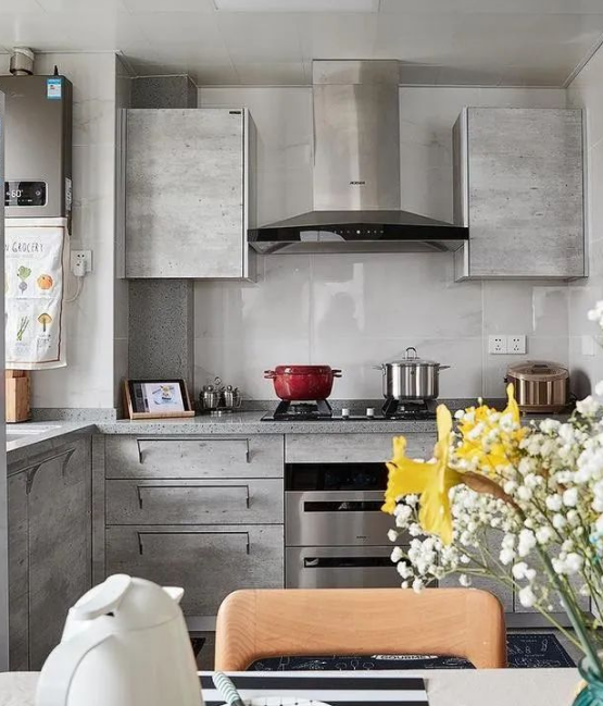 墻面貼磚似乎是唯一一種大家不謀而合的解決辦法。而事實上也確實如此,貼墻磚能夠解決很多的清潔問題,如用了30年的老廚房,即便磚縫堆滿了黃漬漬的地溝油,磚面依舊是潔白,處理得當(dāng)還跟新的一樣,做得開心、吃得放心。