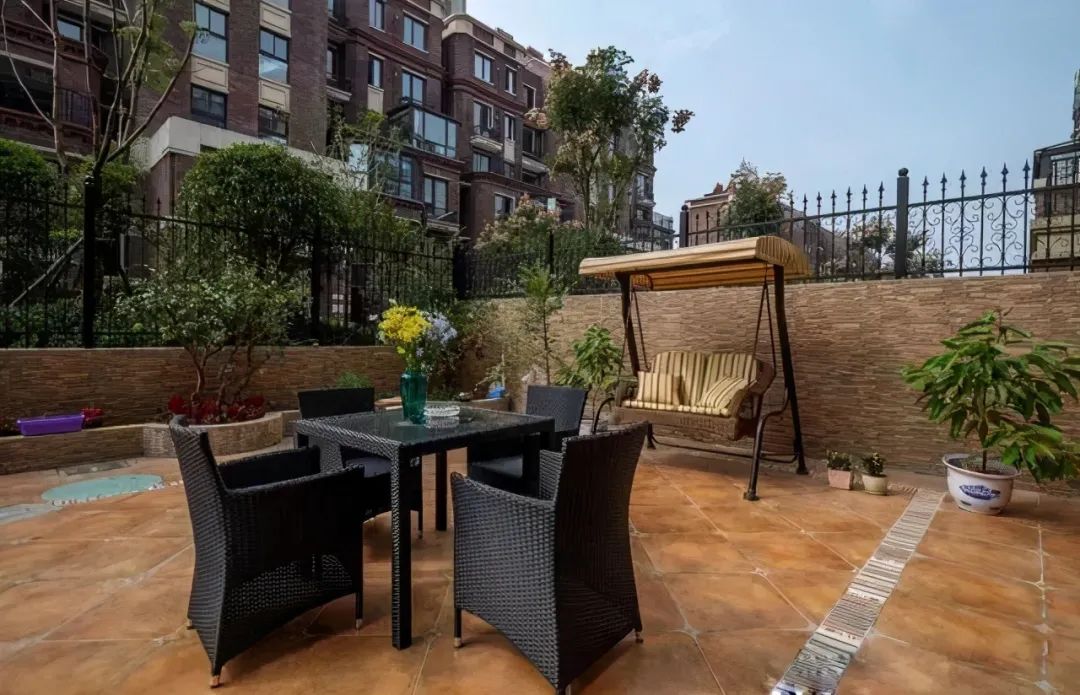 陽(yáng)臺(tái)擺放搖籃椅,類(lèi)似休閑餐館或者一些休閑吧的感覺(jué)。陽(yáng)臺(tái)是露天的,頂面用玻璃或者其他封起來(lái),即使下雨也不會(huì)受到任何的影響。