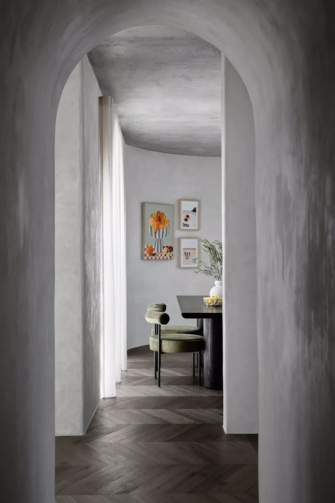 相比傳統的過門石設計,地面通鋪可以營造出更加開闊、流暢的視覺效果,讓整個空間更顯大,也更加整潔美觀。